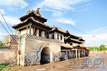 徐沟城隍庙 太原市重点文物保护单位。位于清徐县徐沟镇北。据清光绪八年(1882年)《徐沟县志》载,始建于金大定年间(1161年——1173年),明景泰年间(1450年——1456年)重建,清康熙十二年(1673年)除戏台外,建筑均被火焚,后再建。庙坐北朝南,三重院建筑,有戏台(下为山门)、大殿、寝宫及两侧的钟鼓楼、配殿等29间,占地面积3500平方米。现存戏台修建于明成化年间(1465年——1487年),又称栖云楼,重檐歇山顶,平面略呈方形,后台面阔三间,明间辟门,前台左右扩展3米,勾连搭卷棚顶,旁置八字墙,楼内置通天柱,构成多层框架,2.5米处架木板,上为台面,下为通道。